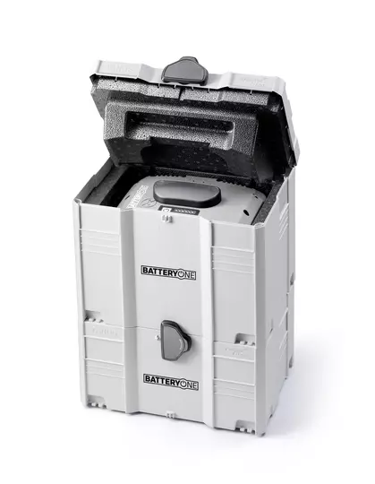 Dans leur boîtier de transport robuste BOX1, les batteries de la série BOB sont protégées de manière optimale contre les dommages et l’encrassement et peuvent être transportées et stockées en toute sécurité. Grâce à sa conception ergonomique, le boîtier est confortable à porter.