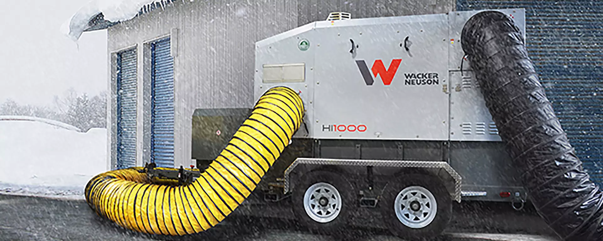 The HI1000 is Wacker Neuson's highest capacity indirect fired air heater. Available with or without a fuel tank. For remote applications, our DGM version includes a custom extended service genset. All versions are ETL certified.