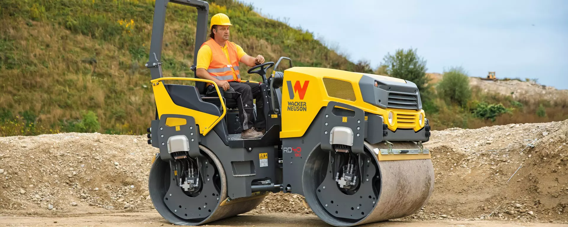 Rouleau tandem de la catégorie 4,0 t, deux cylindres vibrants, avec filtre à particules diesel.