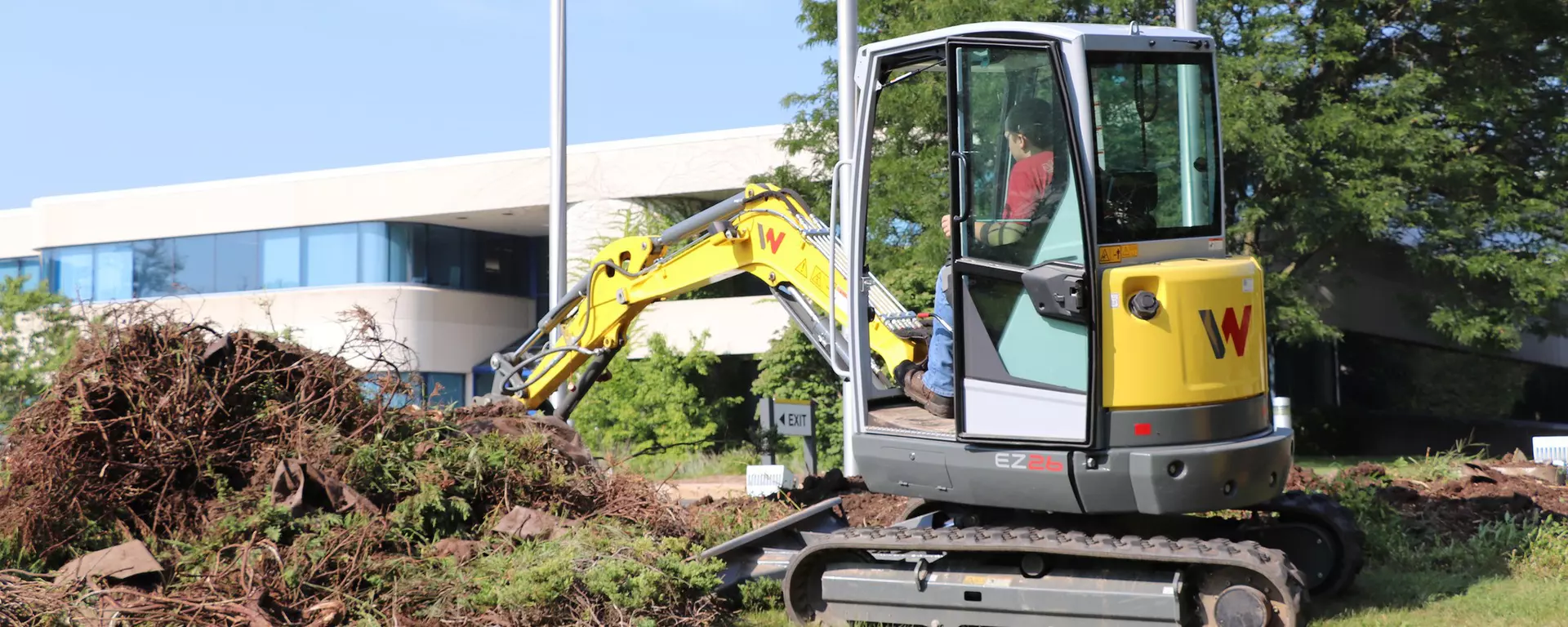 A escavadeira compacta EZ26 garante design moderno, flexibilidade e facilidade de uso. Com o reboque do carro até o próximo canteiro de obras? Sem problemas - o baixo peso permite o transporte incluindo acessórios usando um reboque de 3,5 toneladas. Um inovador mecanismo de janela frontal para fácil ventilação oferece conforto de trabalho e facilita a comunicação entre o operador e os colegas. O suporte da alavanca de comando, a ampla entrada da cabine e a disposição dos elementos de operação e exibição da EZ26 são ergonomicamente perfeitamente adaptados às necessidades do seu local de trabalho.