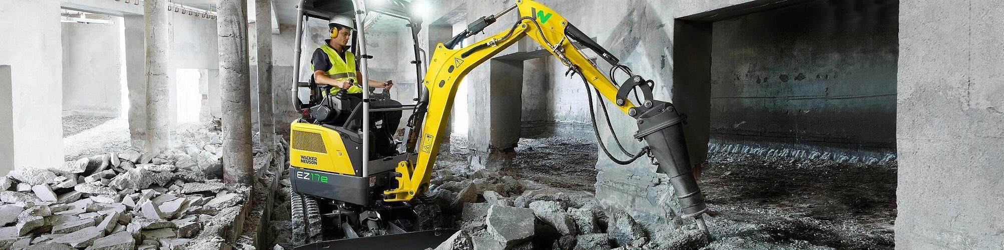 The electrically operated construction machines in our zero emission series protect operators and the areas surrounding construction sites. So many work steps can be carried out without any problems, even in poorly ventilated environments.