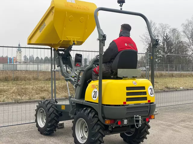 The twin-lock 4-wheel drive system makes the 1501 a perfect partner for uneven or steep terrain. The articulated pendulum joint adapts to all uneven terrain providing the necessary stability. The high tip skip, equipped as standard, as well as the optionally available swivel tip skip, ensure that no requirements for use are overlooked. A fold-down roll over protection system and the small dimensions make it convenient to transport. The optional reverse alarm, rotating beacon and outside review mirrors enhance safety. Wide leg protection, the fold-down roll-over protection system and the large control station provide safer and intuitive operation.