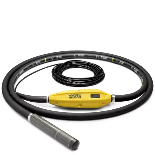 Vibrador interno eléctrico con convertidor de frecuencia integrado para la compactación del hormigón. Longitud de la manguera protectora de 8 m.