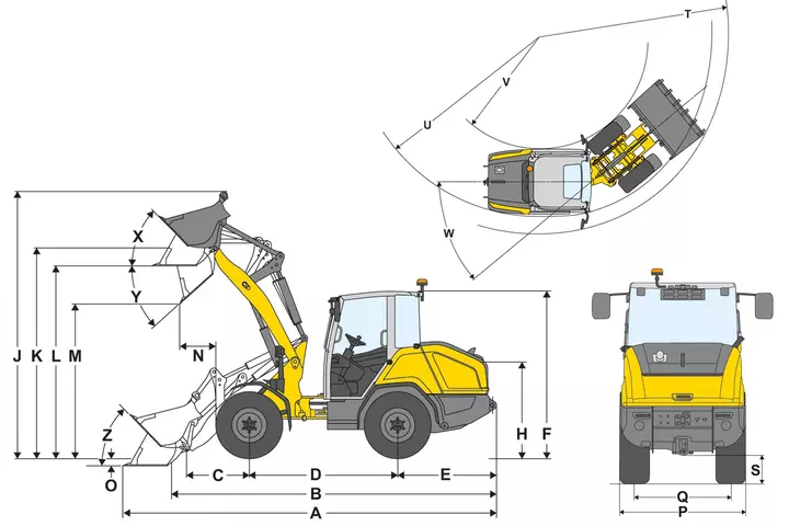 | K | Svingpunkt skuffe (maks. løftehøyde) | 3.040 mm | |