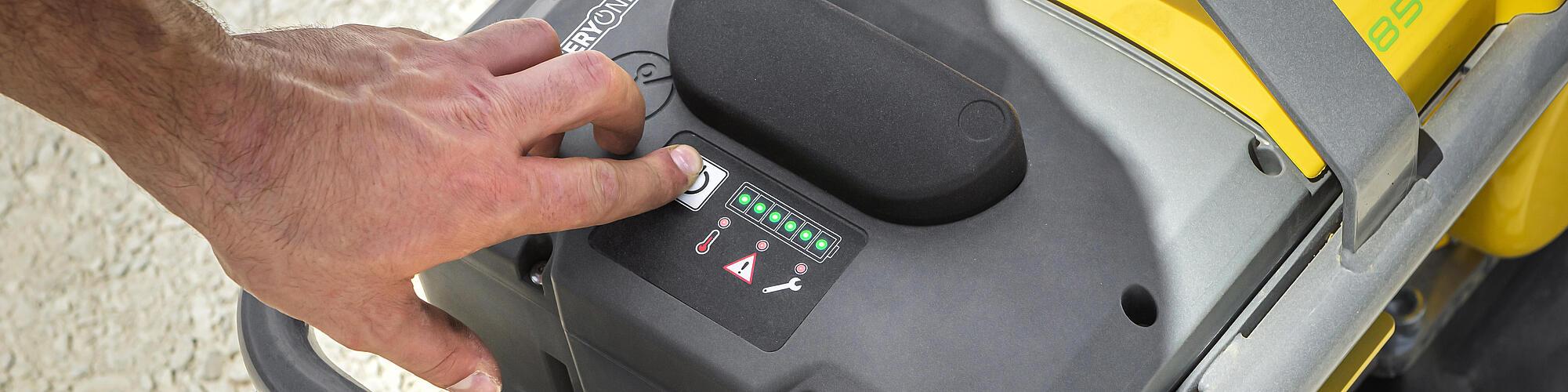 Vårt batteridrevne anleggsutstyr er enkelt å betjene. Med et tastetrykk kan BatteryOne-batteriet startes ganske enkelt. Det passer ikke bare i mer enn ti typer anleggsutstyr fra Wacker Neuson, men også i utstyr fra andre produsenter.