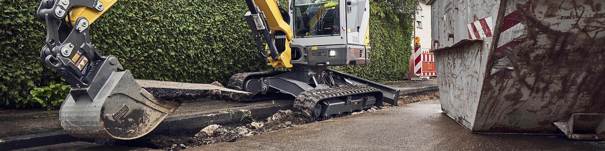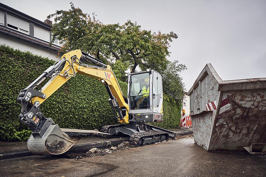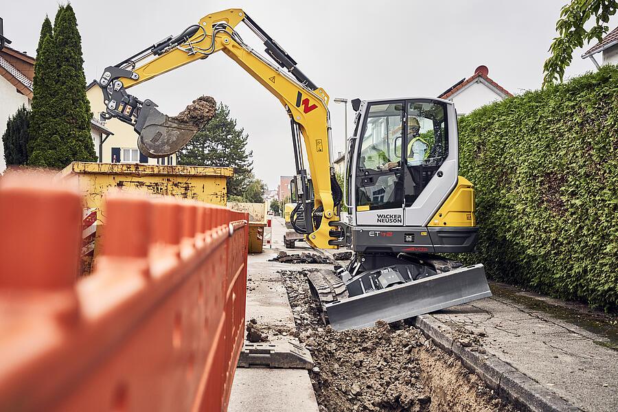 Compact excavators in particular often move on uneven terrain. They work on slopes or curbs. That's exactly when the entire excavator inevitably tilts to one side. A sloping thing.