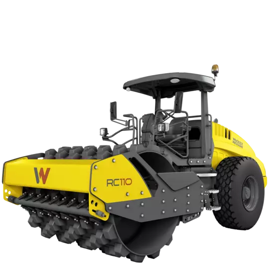 Compactadora monocilíndrica de suelos de la categoría de 11 t con techo de protección, tambor de pata de cabra delantero con vibración y neumáticos traseros con perfil de tractor.