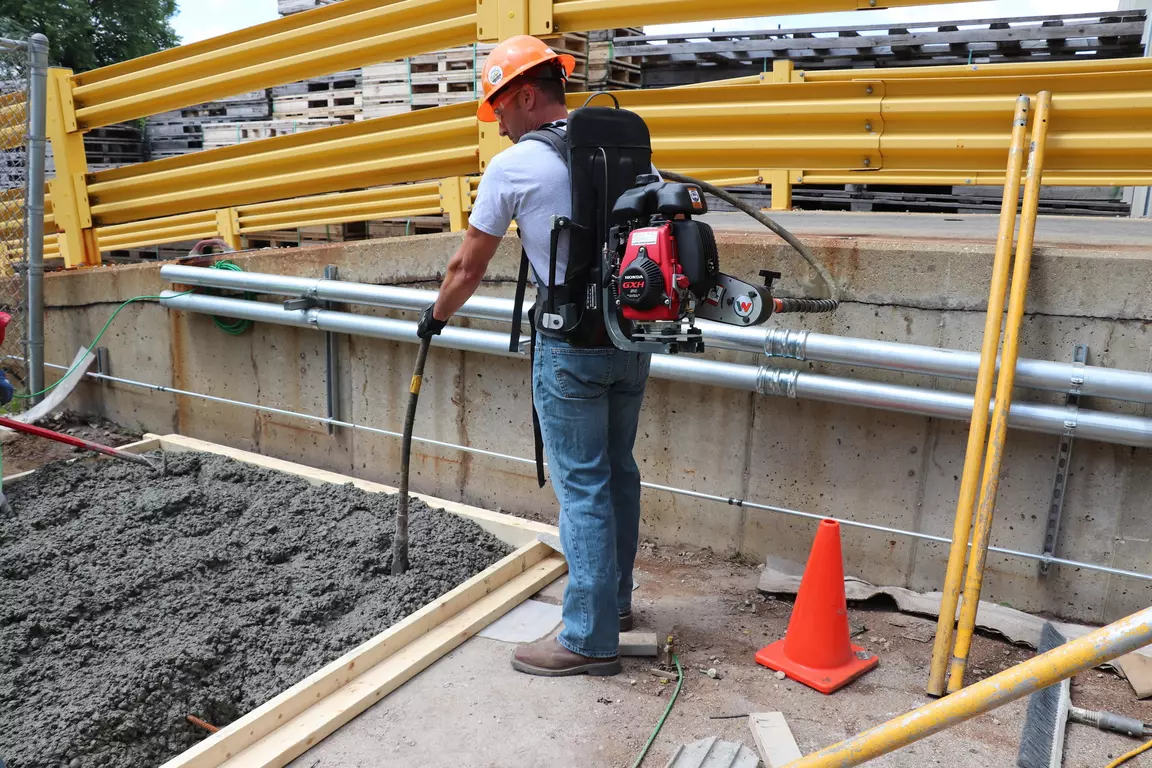 The portable gasoline vibrator with comfortable backpack features high impact, high speed concrete vibration. It is designed for light to medium duty concrete work and hard to reach concrete applications with limited electrical supply. Throttle control can be moved on either side of the operator to suit individual operating preferences. Swivel engine mount keeps the center of gravity close to the operator.