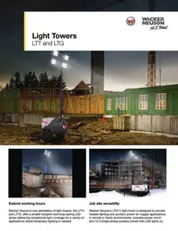 Expand your work day and create a safer work area with light towers that provide superior lighting. Wacker Neuson light towers offer long-lasting LED lights and large fuel tanks provide long hours of continuous lighting. Adjustable vertical masts can rotate 360 degrees for optimum lighting flexibility.
