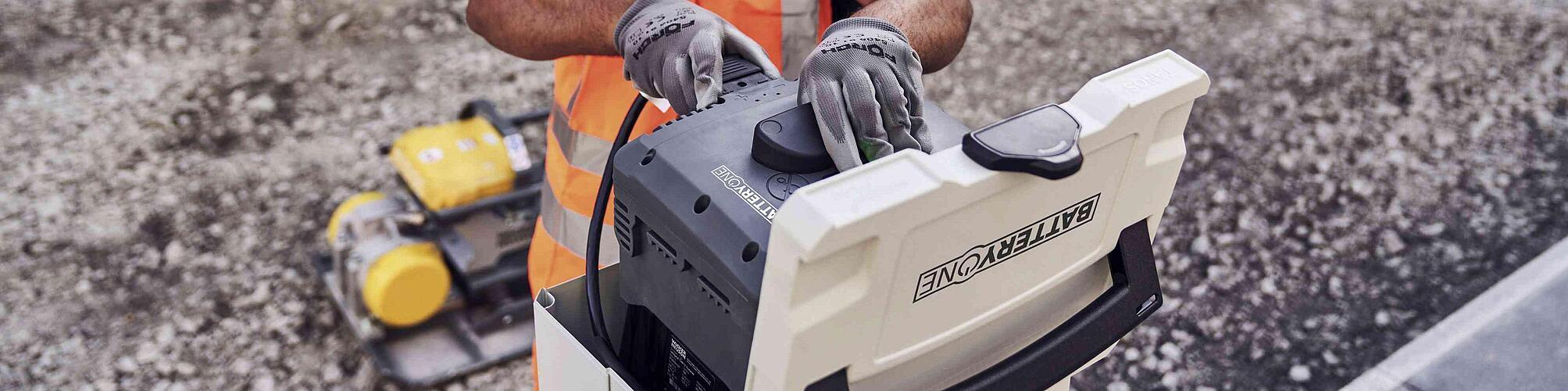 The BatteryOne battery can be used not only in all battery-powered equipment from Wacker Neuson, but also in construction equipment from other manufacturers. The idea of the battery system: One battery for all.